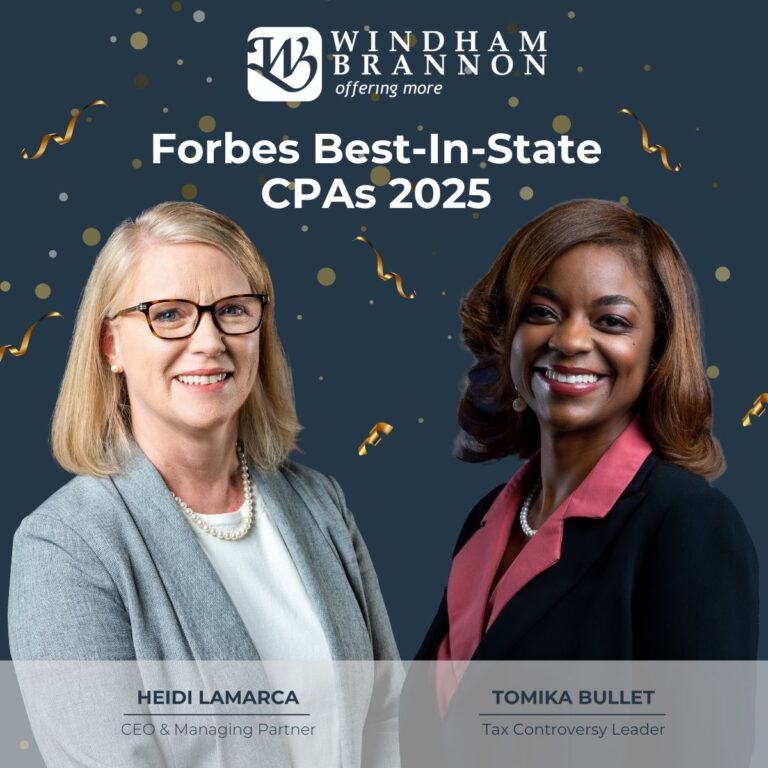 Atlanta – (May 13, 2025) – Windham Brannon, a leading accounting and advisory firm, is proud to announce that Heidi LaMarca and Tomika Bullet have been recognized among Forbes’ Best-in-State CPAs of 2025 for the state of Georgia.